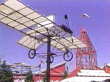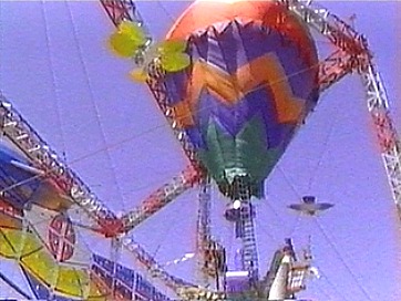 Everything imaginable that could leave the ground was thrown helter-skelter onto the Air Plaza's mock runway. Like a giant garage sale, vintage and modern air planes, kites, balloons, parachutes, gliders and inflated sculptures were displayed around or suspended from a 30-metre-high tower.