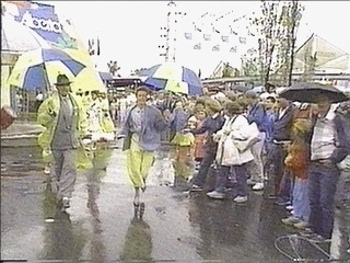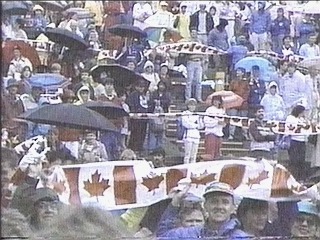 It was one of the sunniest summers in Vancouver's history, but it rained buckets the one day the news media from across Canada flocked to Vancouver to cover the festivities.  Does it rain in Vancouver this much???  Nah.