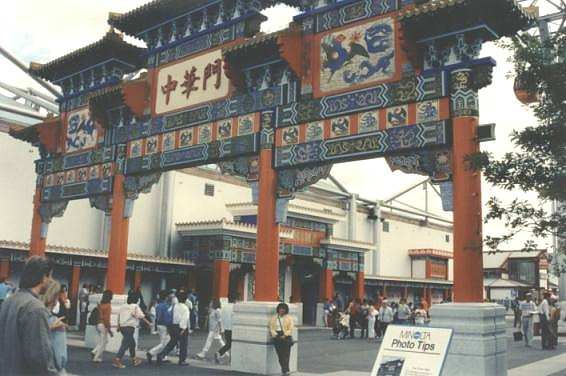 An eye-catching ancient pailou (arch) and a long ornate walkway lead visitors inside the People's Republic of China Pavilion. This was one of the largest pavilions on site.