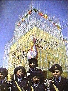 Craftsman continuously changed the pavilion's facade throughout the fair.  This dramatic act was an artistic gesture to symbolize the restless spirit of change and regeneration which has guided the development of Hong Kong from its earliest beginnings.