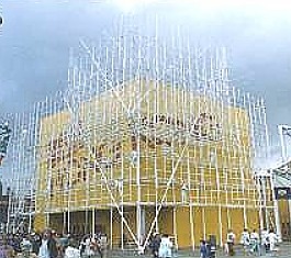 -- The pavilion's exterior has gone beyond the simple boundaries of the Expo module.  It will be in constant change demonstrating bamboo scaffolding construction techniques.