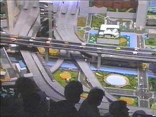 Take a ride to tomorrow aboard the 450-metre diorama of a futuristic city.  The HSST passenger train floats on electro-magnetic modules, providing a safe and efficient solution to the problem of moving a high volume of passengers quickly, economically, comfortably and cleanly.