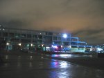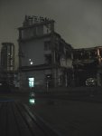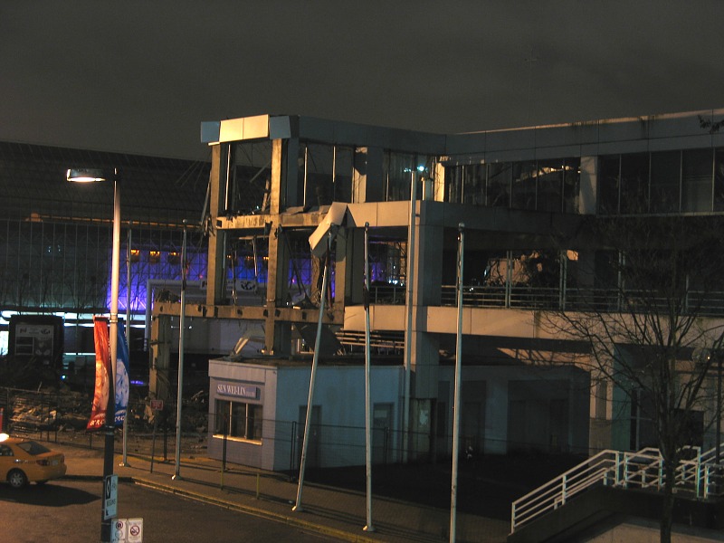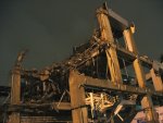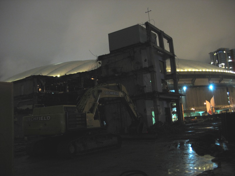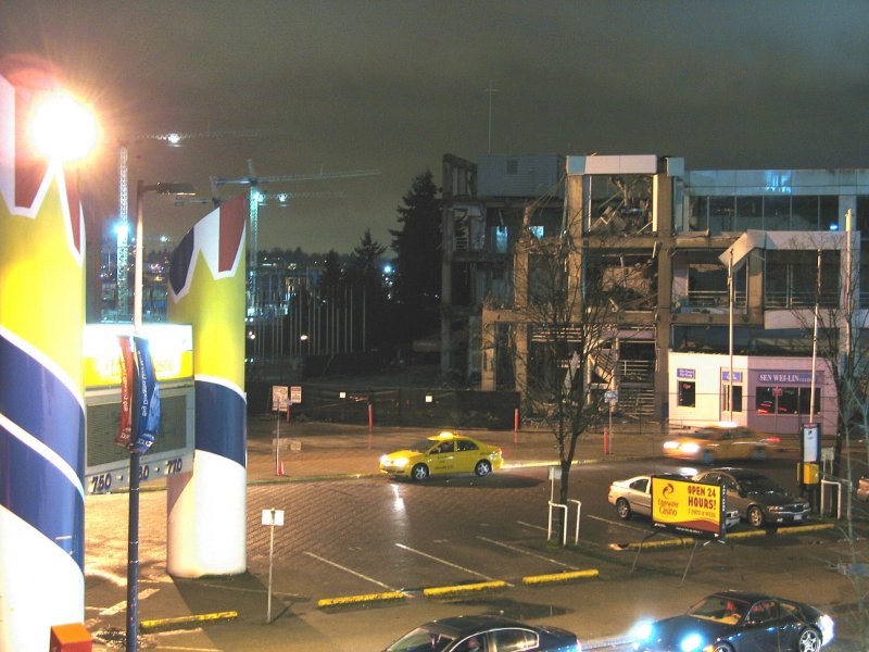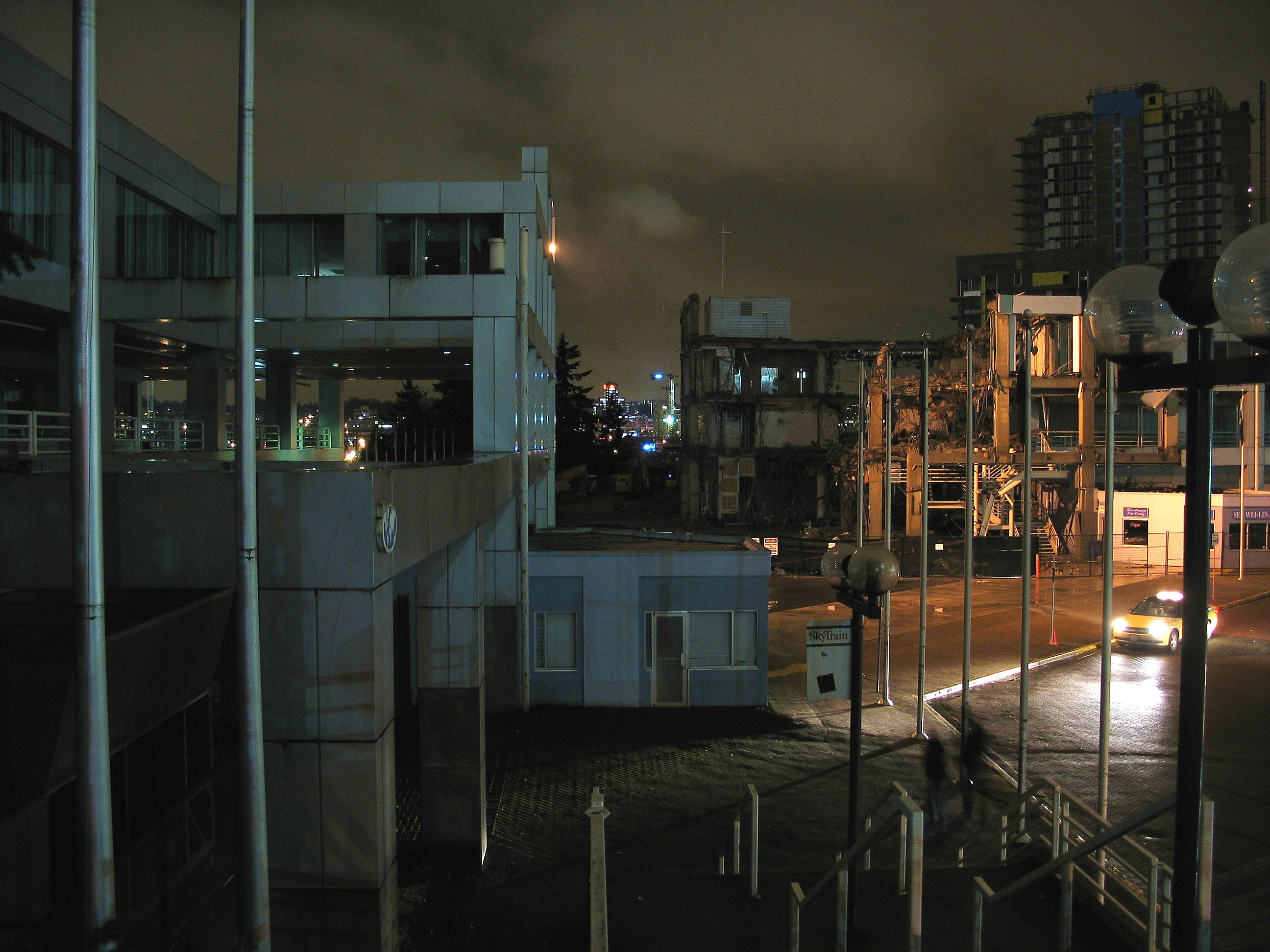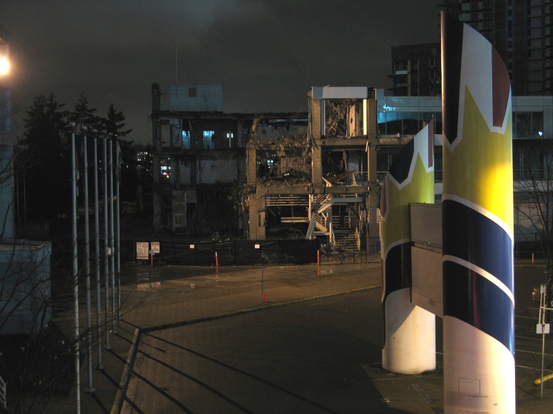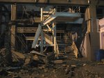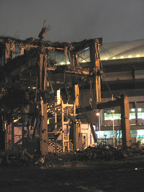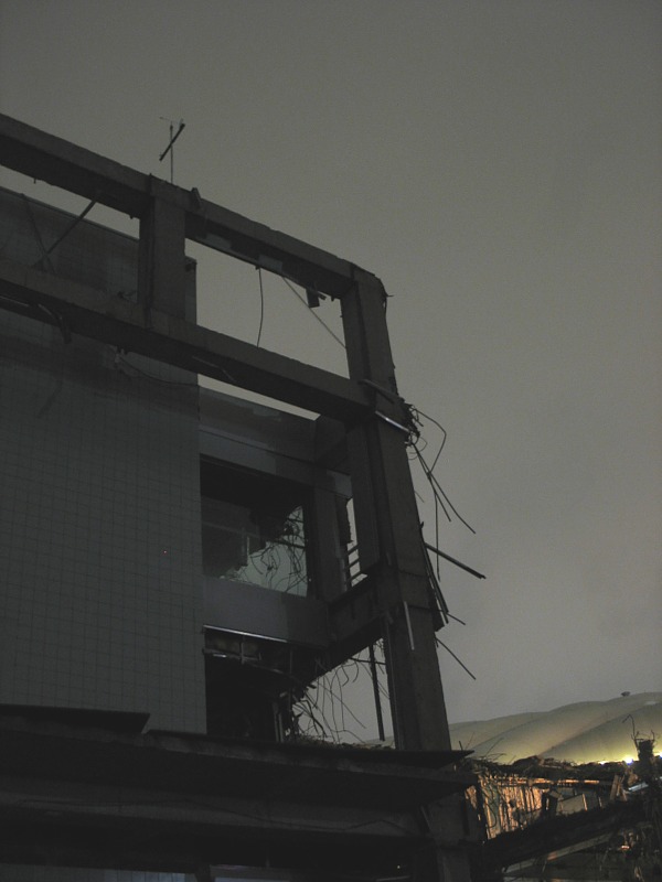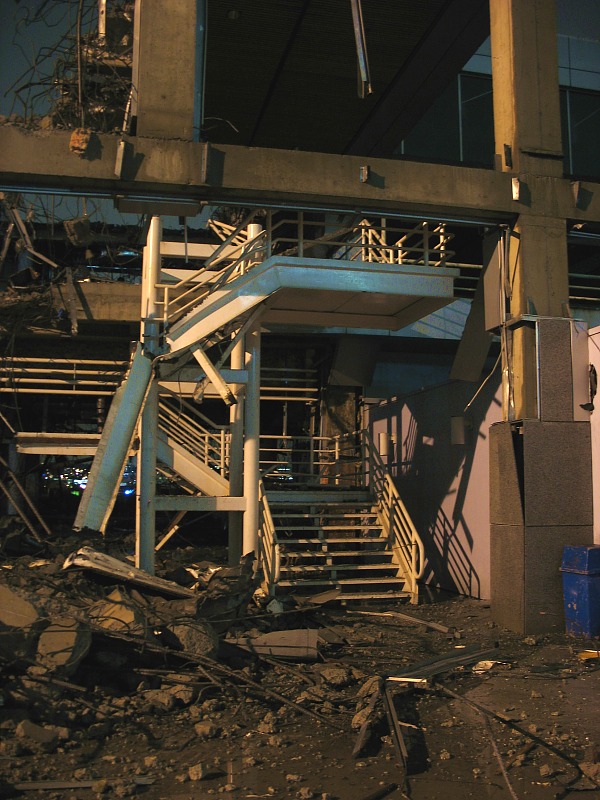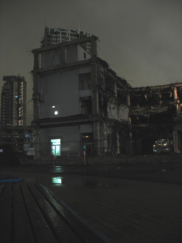 Lights still glow in the stairwell although most of the building has succumbed to the wrecking ball.