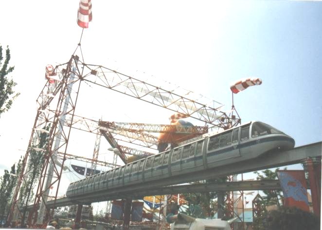 THEME: Transporation and Communication. Expo 86 was all about movement -- the movement of people, and the movement of ideas. The symbol for Expo 86 was comprised of three interlocking circles which represented the three forms of transportation, namely land, air and water. The line stretching up and outword symbolized the human race forever striving for excellence. Listed in the Transportation section of this site are some of the modes of transportation availabe free to the public. For fear of